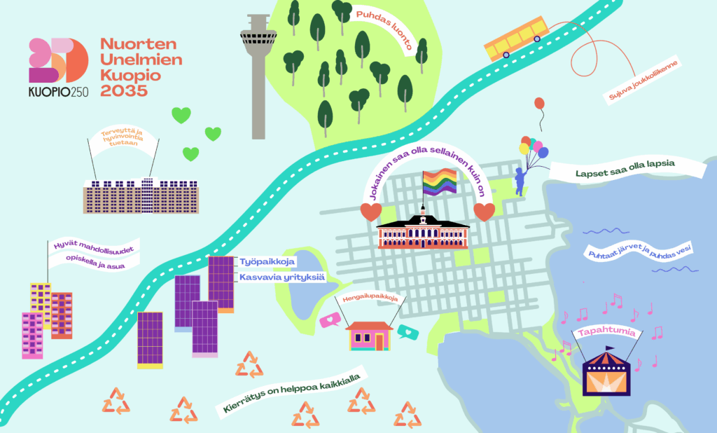 Kuopion kaupunki on käynnistänyt strategiauudistuksen, jonka tavoitteena on ulottua vuoteen 2035. Kaupunki halusi osallistaa strategiatyöhön kuopiolaisia nuoria. Perinteisesti strategiatyön tukena on käytetty mm. erilaisia kyselyitä eri ikäisille kaupunkilaisille. Tällä kertaa kaupunki halusi kuulla nuoria tarkemmin työpajatyöskentelyn merkeissä osana Kuopion 250-juhlavuotta, jonka pääkohderyhmä on lapset ja nuoret.